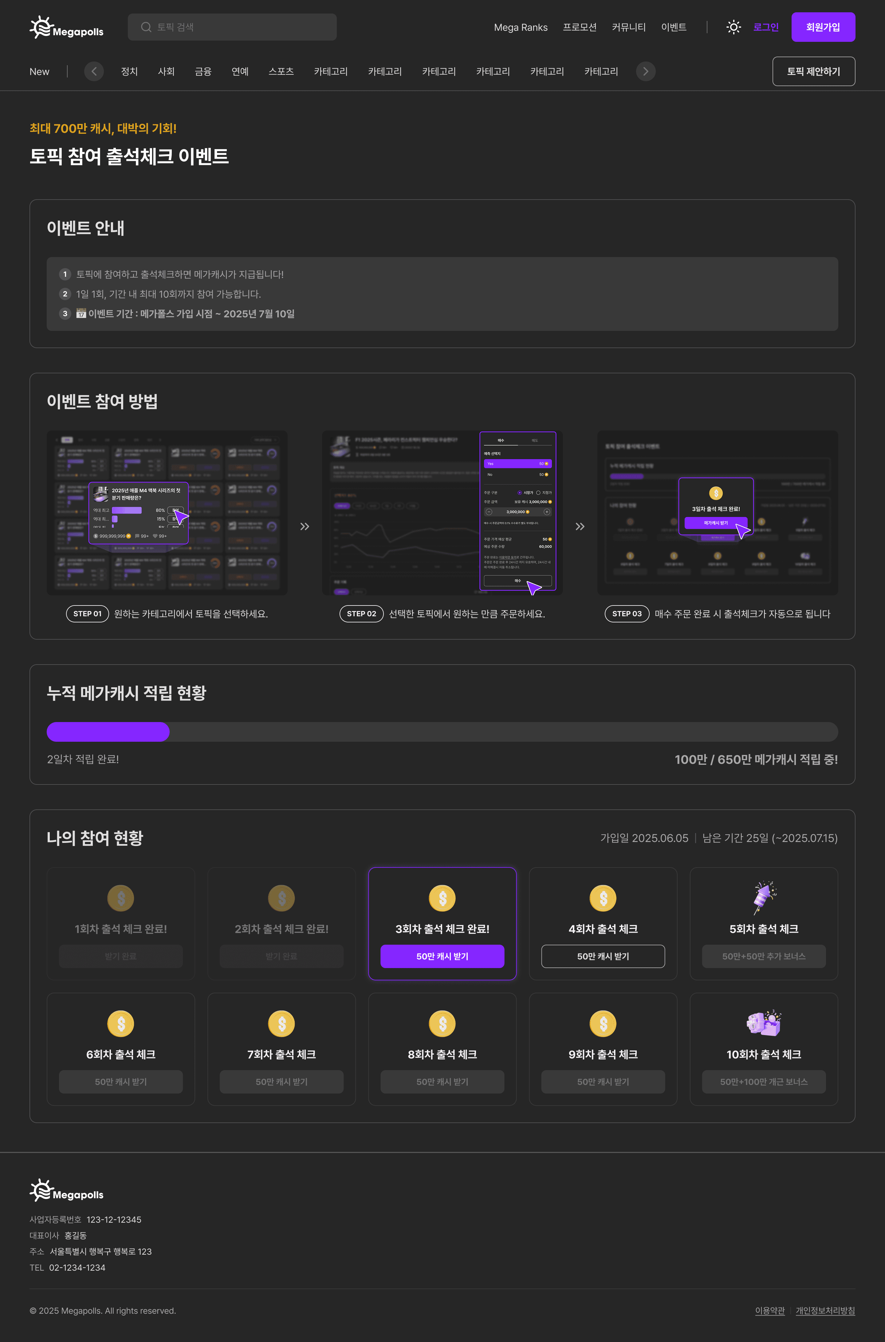 출석체크 이벤트 및 프로모션 기능